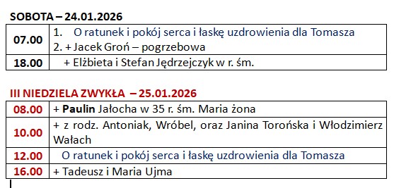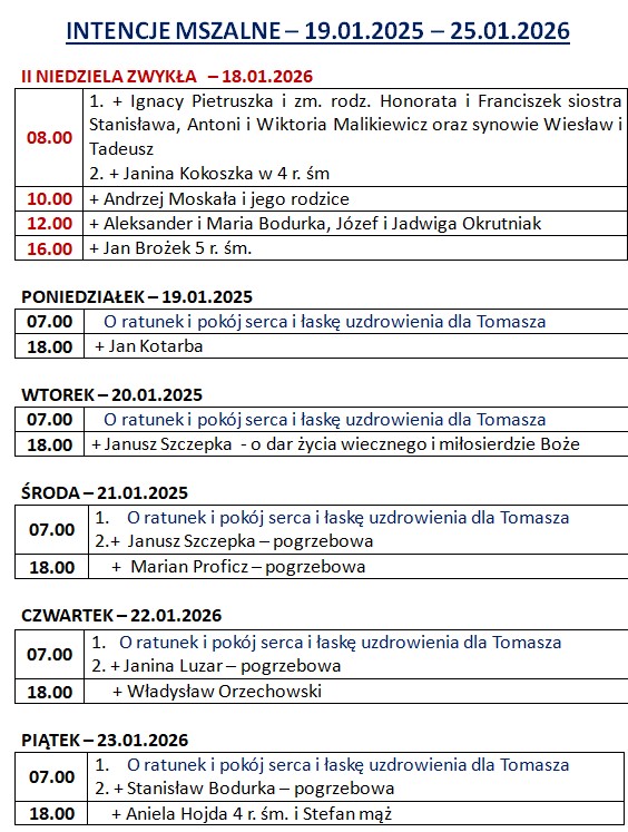 INTENCJE MSZALNE – 19.01 – 25.01.2026