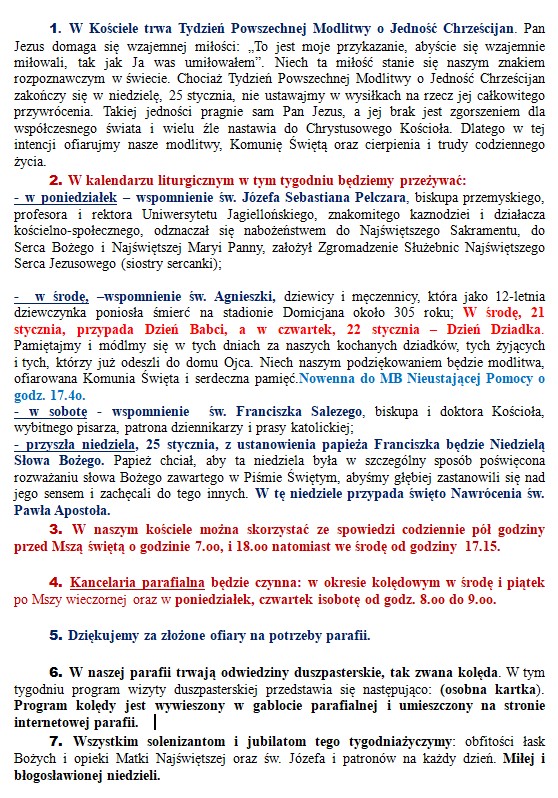 OGŁOSZENIA PARAFIALNE – II NIEDZIELA ZWYŁA – 18.01.2026